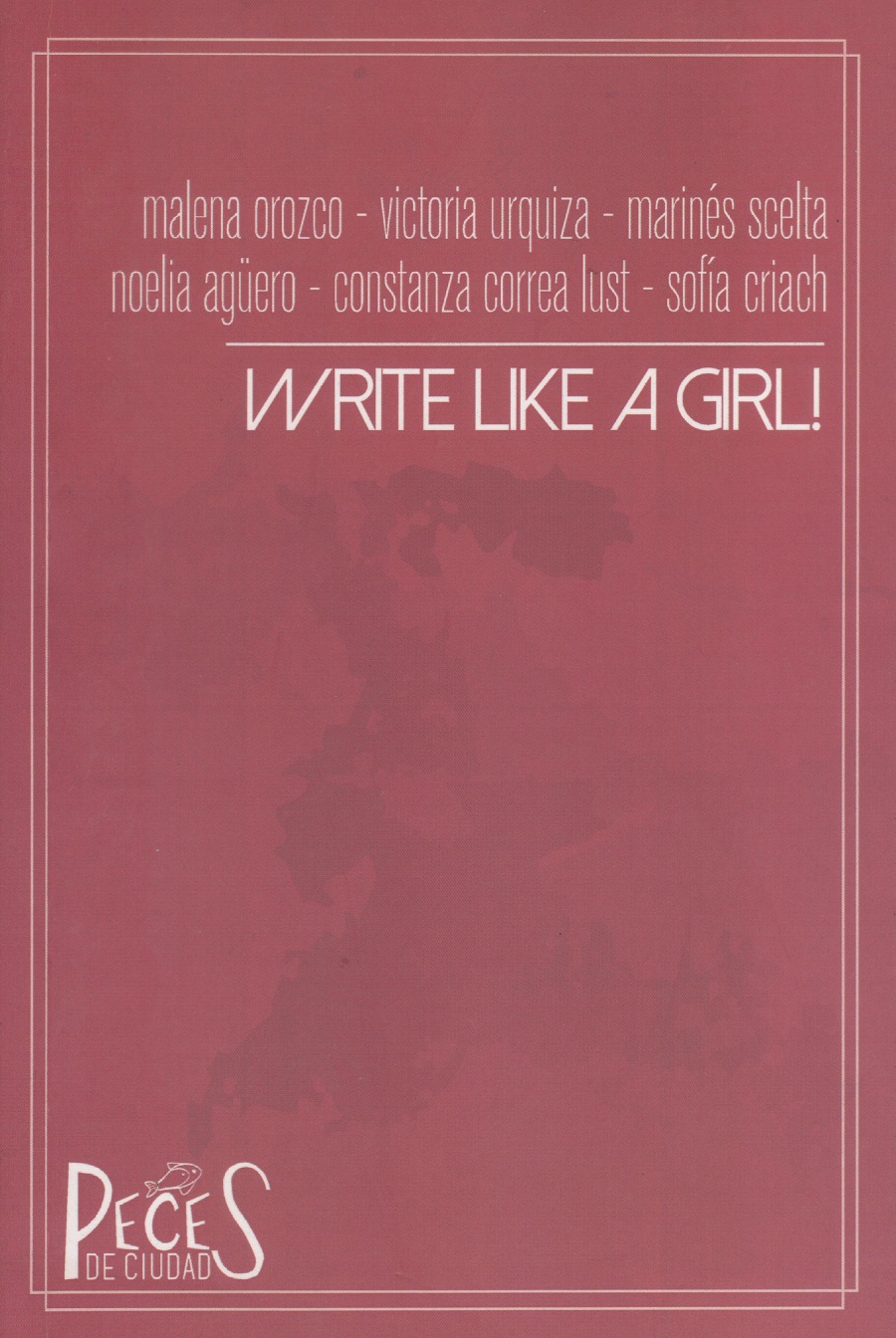 Un ejemplo de ello es el volumen que nos ocupa, “Write like a girl!”, editado por el sello Peces de Ciudad Ediciones (ver: www.pecesdeciudad.com.ar), de Buenos Aires, y que consiste en una antología de escritoras de la provincia de Mendoza, Argentina. Un detalle por demás relevante es que el ejemplar que estoy reseñando es una tercera edición (2017), característica poco común en este tipo de publicaciones en la Argentina. Las autoras son Malena Orozco (quien aporta narraciones breves), y las poetas Victoria Urquiza, Marinés Scelta, Noelia Agüero, Constanza Correa Lust y Sofía Criach, todas ellas integrantes del colectivo del mismo nombre (ver: https://es-la.facebook.com/writelikeagirl/) que da título al volumen. El grupo se define según estas palabras de sus integrantes: “Colectivo que busca generar un lugar para artistas mujeres, surge a raíz de la necesidad de abrir espacios de creación, experimentación y difusión” y en su “Manifiesto”, incluido en la página 7 de la antología, se explaya diciendo:
