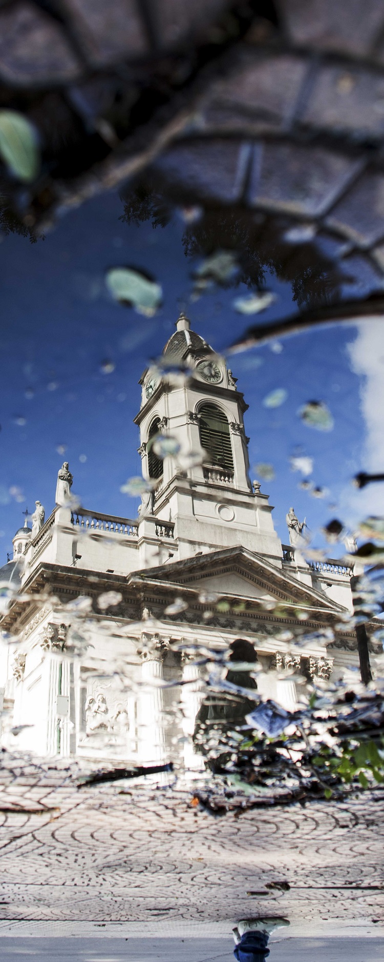El libro Espejos Urbanos de Sergio Castiglione, gira en torno a un ejercicio lúdico que incluye al espejo como base compositiva y a sus refracciones como modo de re-descubrir el espíritu de una ciudad desde sus ambientes entrañables. Arquitecto de formación, Castiglione es consciente del valor de la arquitectura y de sus códigos no sólo en la articulación de la trama urbana, sino en la conformación del legado cultural de un espacio que se redefine día a día. Las imágenes invertidas de los edificios que retrata -nacidas de la refracción que ejercen los charcos y el agua acumulada en las calles- ofrecen una visión poco común del motivo, una mirada que se inserta en el archivo existente del registro realista y, de modo particular, en el imaginario de esa Buenos Aires querida a la que tantos artistas han cantado desde la música y otras formas poéticas, ya sean visuales o escritas.