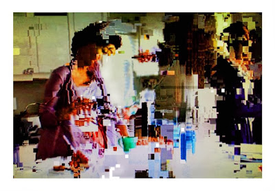 Sus instantáneas consiguen congelar las ráfagas pixélicas que, vigilante y paciente, intercepta a medio camino del flujo de la teleseñal, corrompiéndolas hasta tornarlas susceptibles a la especulación del intelecto o simplemente malogrando las probabilidades de su legiblilidad.