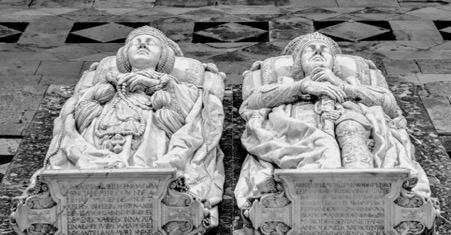 - Los sepulcros góticos de los condestables Pedro Fernández y Mencía de Mendoza labrados en mármol de Carrara (1500). Es una tentación -…sin justificar- el unir tu mano a las grietas de la piedra en el rostro de los difuntos.