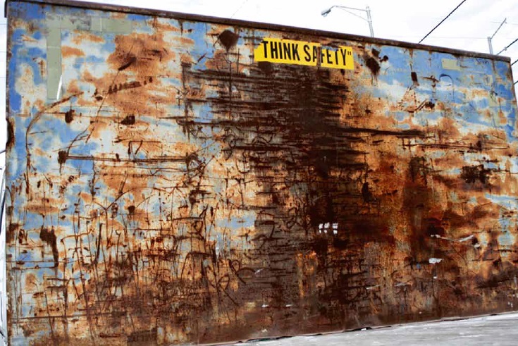 Cuando la palabra se apodera del muro, cuando los signos gráficos permanecen corroídos por el tránsito del tiempo o cuando la destrucción se detiene y forma parte del paisaje…Entonces, el autor se consagra como poeta urbano sin haber escrito una sola coma: Iluminísimo (2010), Untilted (2008 ) Think Safety (2012)