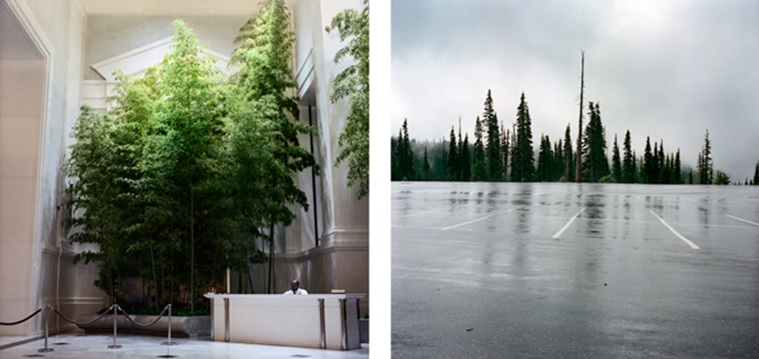 La interpretación de la altura en una fotografía donde una mata de proporciones gigantescas es protagonista por su escalada hacia un techo que imaginamos sin fin, Lobby with Trees 2003, deja a un discreto conserje afroamericano en una posición insignificante y crea una sensación de presencia casi religiosa. Es decir, celestial, a pesar que lo identificamos, posiblemente, como la entrada de un condominio de apartamentos, hotel, o de un museo.