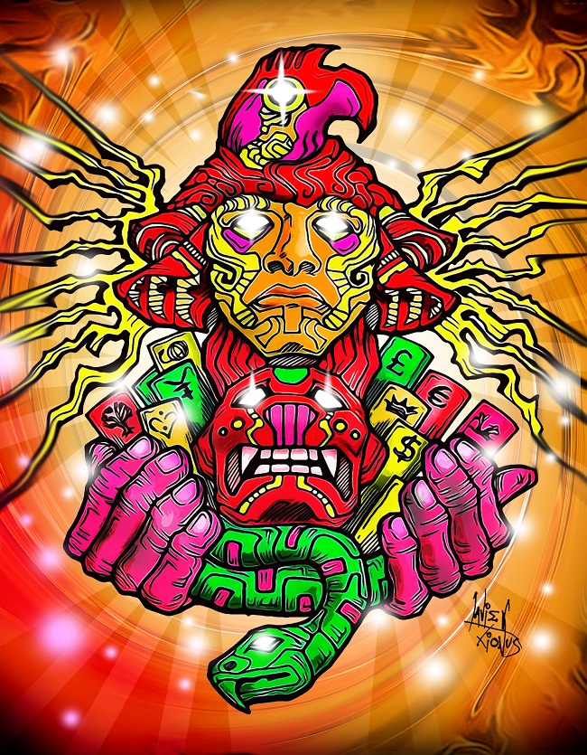 Representa a un místico brujo con una diadema típica de las culturas prehispánicas.