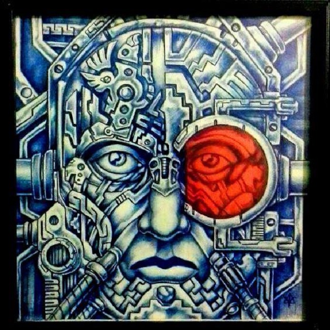 Una obra que representa una combinación de diseños biomecánicos con un guiño hacia las lágrimas representadas en las diademas del altiplano boliviano. Precisamente de la cultura Tiwanaku.