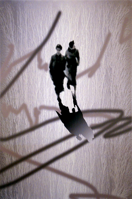 “Yo vivía en New York, una ciudad tan fuerte, que amo, pero que es tan fuerte, tan especial… Llegó un momento que sentí que las personas eran como sombras, tuve esa sensación. En general todo nace de sensaciones muy intensas, que después voy aclarando para saber qué pasa, y cómo las voy a representar. Empecé a sentir que esas personas por momentos parecían sombras porque eran obscuras, sobre todo en los subtes, cuando la gente subía y bajaba, y además tanta gente…. Después cuando voy una vez a Buenos Aires me di cuenta que usaban maniquíes con una banderita que se movía, para que pararan los coches. Parecían personas, entonces ahí empecé a distinguir esa mínima diferencia entre lo real y lo irreal y bueno, ahí entonces empezó a nacer la idea de las sombras, y las empecé a poner en foco con un montón de personas que estaban como caminando, pero después las empecé a profundizar y empecé a trabajar con grupos separados y luego como vínculos entre los seres humanos. Las relaciones, es otra cosa que a mí me preocupa mucho, de la familia, de las mujeres solas, de las soledades, y ahí se multiplicó en varios trabajos y quedó la serie de las sombras.