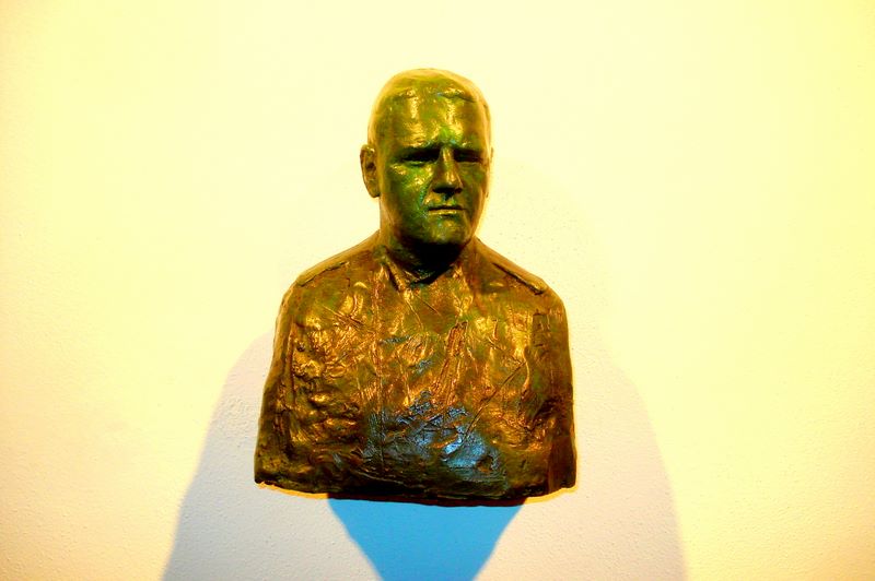 En una ciudad como Miami donde los edificios se encuentran entre los matices de la claridad y los colores pastel, nada puede ser tan provocador que mostrar la luz industrial y nórdica del bronce. En una línea cercana al realismo soviético de los años treinta, Ángel Vapor se sumerge en un mundo particular y cerrado a la hora de narrar la idea de la cual se enamora. Llenas de compromiso interno, silenciosas, hermosamente brutas y salpicadas a veces por motas blancas de arena, sus piezas parecen recién salidas del frío del metal. La fusión, el relleno y el vertido del bronce marchan al unísono. Y entonces, como salidos del taller en aquel instante, aparecen unos bustos clásicos. Torsos que imitan a cualquier personaje histórico y que nos recuerdan que, aún hoy, existen ciudadanos que necesitan de la intemporalidad para saber que han desfilado por esta vida. La imagen decimonónica del Dr. Gaspar, mostrando la impavidez y la sabiduría en su mirada es un ejemplo. “Si no pusiera mi obra comercial en la exposición, estaría engañando al público… y tanto construyo en esa línea, como a la hora de hacer un homenaje a mis herramientas de trabajo o a un soldado desconocido”, una composición geométrica parecida a la de los carteles de la era deco.