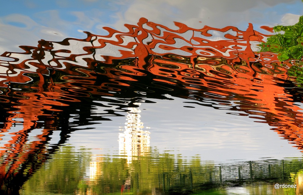 El agua que imprime Yeraldine Ordoñez en sus obras tiene el parpadeo discreto de un tarde de otoño. Se expande en el canal como si el mismo fuera visto a través de una botella de colonia. Utiliza la torre de la giralda del distinguido hotel Biltmore y la hace emerger desde el fondo del canal como si fuera a ocurrir una aparición inesperada.Las formas se descomponen en los puentes como piezas de puzzle, a veces, y en otras, los mantiene con su forma férrea y original. Los colores son fuertes en intensidad y amainados por el efecto del reflejo. La luz es clara y a la vez caligráficamente borrosa desde los destellos. Dentro de su trayectoria como fotógrafo, Yeraldine sigue investigando aquello que la retina de la mayoría de los mortales omite a su paso por lo cotidiano, mostrándonos a través del ojo de la lente, lo posible dentro de la literatura de la imagen en nuestra ciudad. E.R