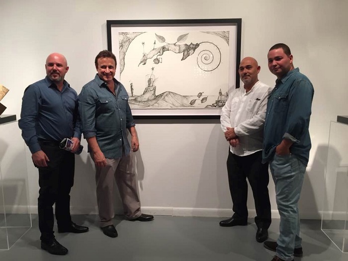 Para finalizar la obra de un maestro Gary Anuez que, no por ser única en la galería, implica ausencia de trayectoria en la misma. El Bicho (The bug) desde el libre albedrío que lo doy a mi interpretación, diré que la vivo como una obra de recordatorio. Isleña por la forma que adquiere el animal que me recuerda a la orografía costeña de Cuba bajo esta forma de loro inclinado. Tropical y caribeña por los elementos surgidos de la naturaleza sobre todos en sus ramificaciones y hojas . Algo así como la unión entre el libro infantil de un extraño y la narrativa de un sueño Con un estilo muy cercano a la línea y composición daliniana, Gary nos da libertad en su discurso para que disfrutemos de este cuento posiblemente escrito desde los pedazos rotos que lleva incorporado en su yo desde el exilio. Nagari