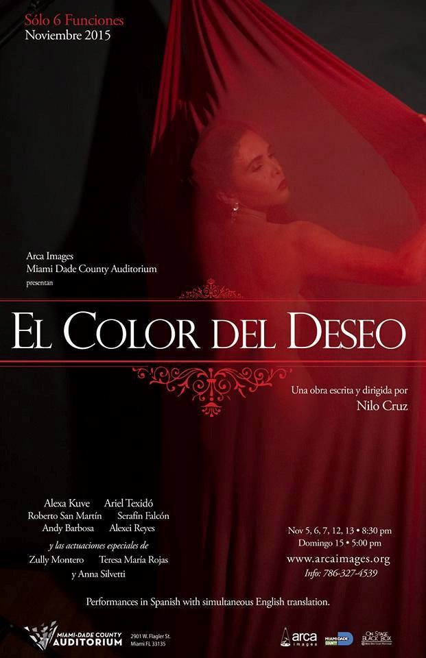 Si algo hay que agradecer a Nilo Cruz en este momento actual del teatro hispano en Miami, es la seriedad con que aborda su profesión para situar una puesta en escena como la de “El color del deseo”. Arrancar con una imagen de una mujer en pantalla grande mientras un hombre la contempla en blanco y negro con el sufrimiento de haberla perdido, es un reclamo sin duda para averiguar qué sucederá a continuación y un buen resumen sobre lo qué nos va a contar en su libreto.