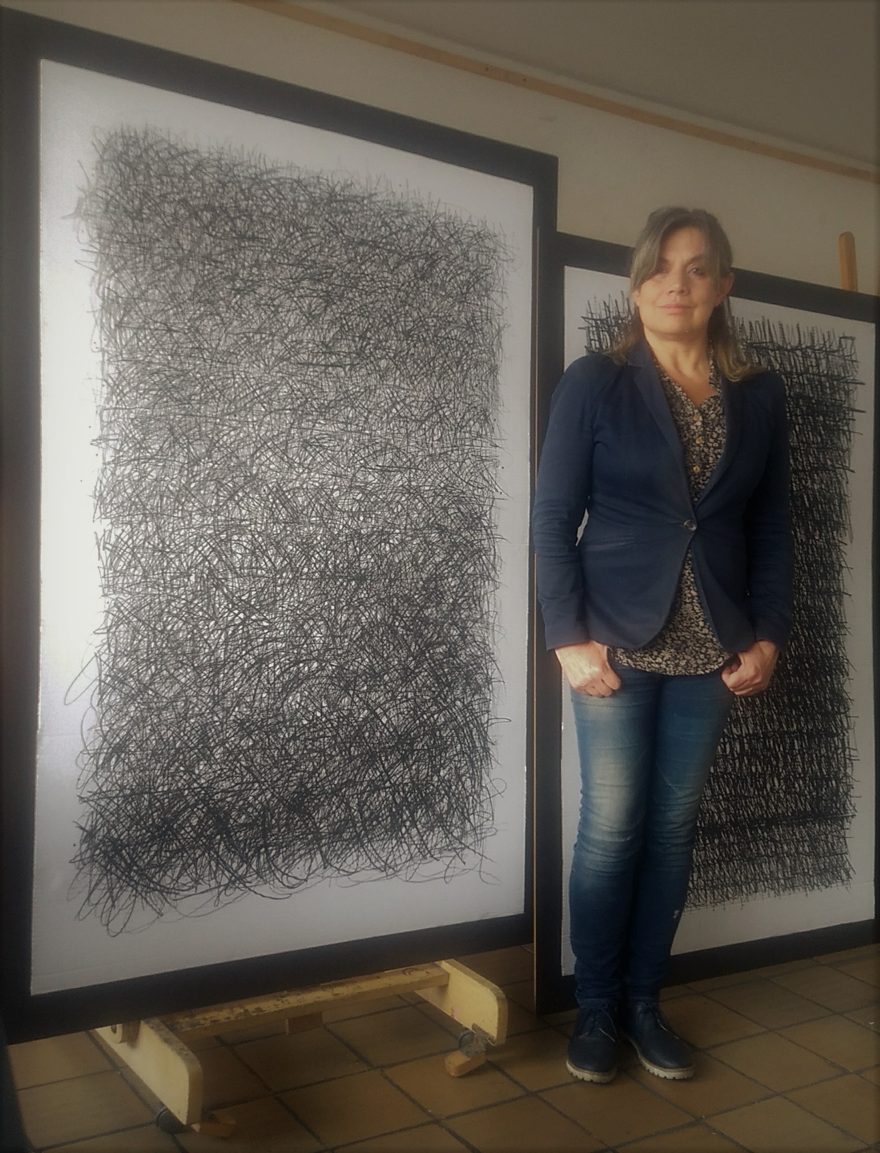 Inmersa en mi trabajo artístico con un proceso de abstracción de 7 años que profundiza sobre las características propias de cada lenguaje como valor autónomo de expresión.