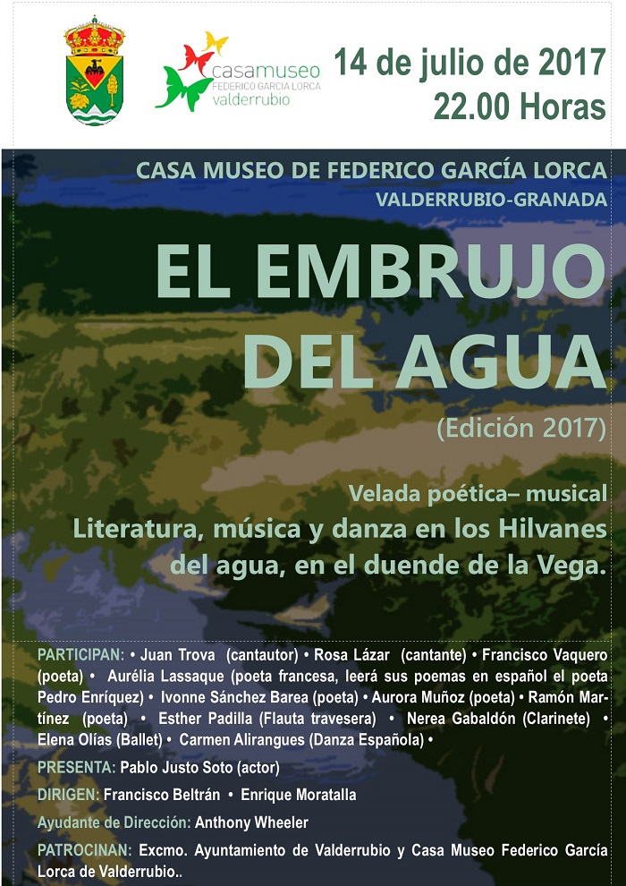 ‘El embrujo del Agua’ que tendrá lugar el 14 de julio de 2017 en la Casa Museo de Federico García Lorca de Valderrubio, donde el poeta paso gran parte de su infancia y grandes períodos vacacionales desde la adolescencia hasta su trágica muerte.