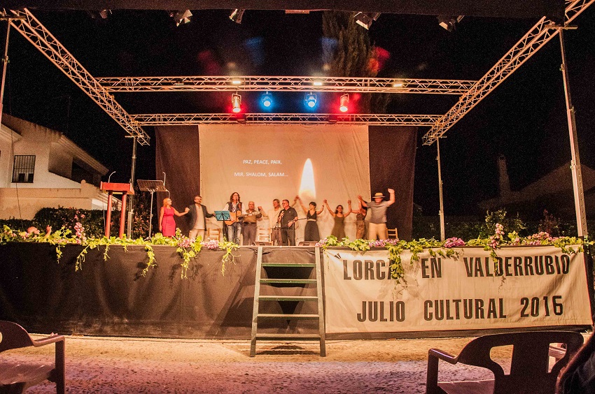 Así pues, como final de la crónica diré que la alcaldesa de Valderrubio Dª. Francisca Blanco hizo lo propio, -agradecer al público su asistencia, a la dirección su buen hacer, al elenco la magia, el embrujo y el duende de una noche inolvidable- en nombre del Ayuntamiento de Valderrubio y de la Casa Museo de Federico García Lorca, y así, se despidió y nos despidió, -tras tener unas palabras de recuerdo y solidaridad con las víctimas del atentado de Munich y con el pueblo alemán, al tiempo que manifestar contundentemente y sin ambages el rechazo a todo tipo de violencia y un alegato por la paz-, diciendo “Muchas gracias y buenas noches y espero que el año que viene nos veamos en la ‘tercera’”