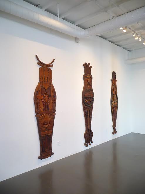 Pero lo que distingue en general a estas piezas son los elementos totémicos. Son los más potentes. A veces, adquieren la suntuosidad del sarcófago egipcio y otras son auténticos homenajes a las culturas africanas. Otras guardan el estilo más surrealista y algunas hasta tienen los trazos de Jean Arp. Piezas solemnes, serias y llenas de versos sencillos. Una obra nada impetuosa a pesar de su grandeza y por otra parte, más dirigida a lo naïf en lo litúrgico que a lo violento o esotérico que podría dar a entender el tema. Esculturas que, junto a otras más salvajes, arrancadas o abandonadas por la madre Tierra, se exhiben en la parte de atrás de la galería para diferenciarlas, probablemente, sus primeras obras de su trabajo actual. Un lujo exquisito el haber traído obra y artista ( del cual tuve el placer de saludar y conversar un rato con Keith) a Miami, por parte de Leila Mordoch Gallery. ER