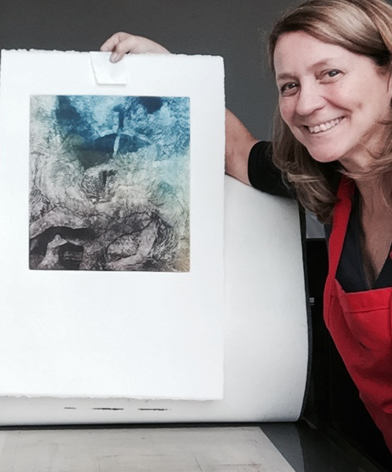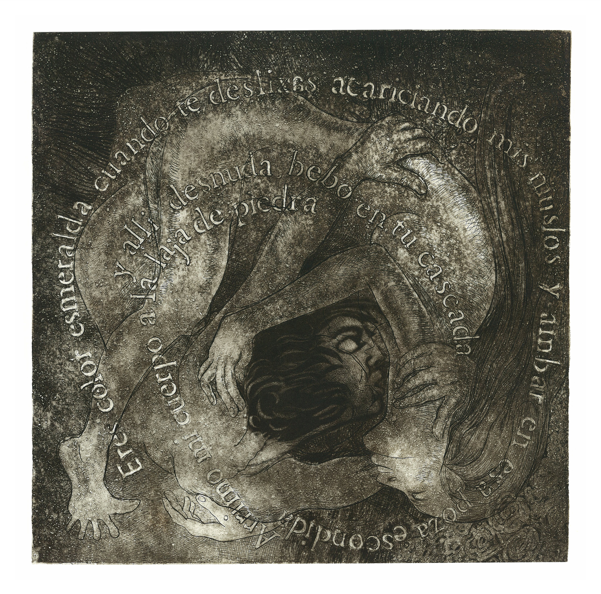 Preparo el metal como un espejo reluciente y pulido. Luego trazo, rayo, raspo, tapo y destapo la superficie dura buscando ritmo y composición, luz y negro intenso. Las ideas van saliendo de la mancha encontrando sus espacios. El grabado es un tiempo de meditación, de libertad, de encuentro conmigo misma.