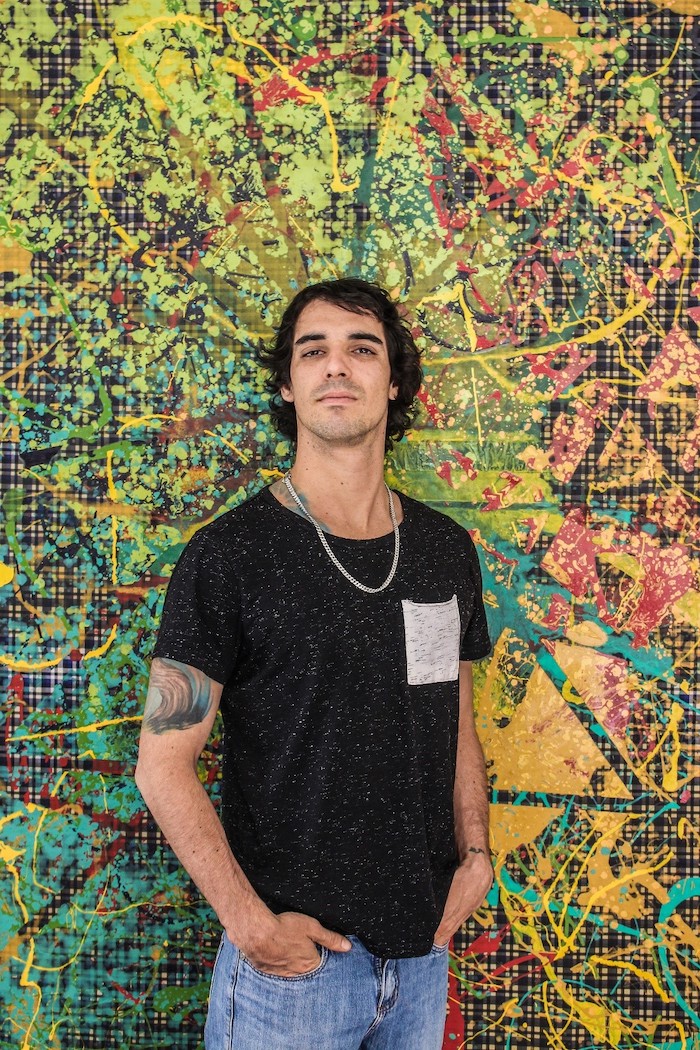 En la serie Sinestesia, el artista nos muestra cómo asocia a la pintura, algunos de los cinco sentidos que posee el ser humano. De esta manera, podríamos decir que su obra no solo es pictórica, sino que en muchas de sus piezas es el performance quien se añade en plena creación.