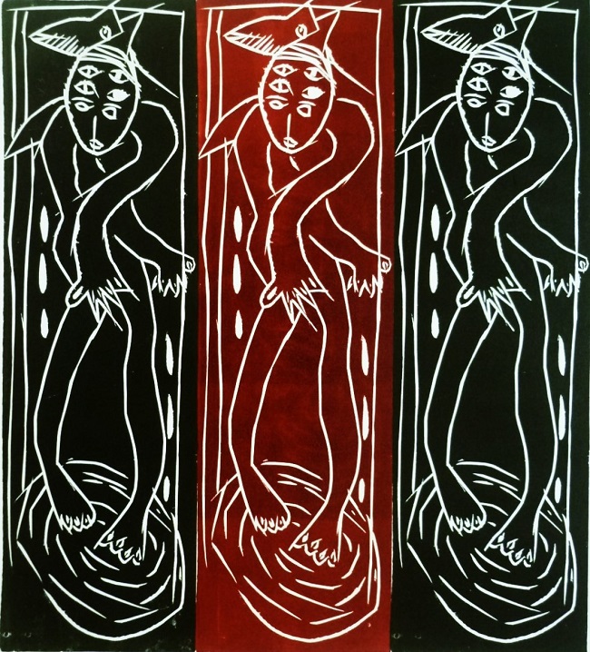 Palabras que cierran con fruición lo que es en sí su propia obra…una felicidad sinuosa desde un trazo primitivo, pero lleno de sentimiento y verdad como sujeto. E.R.