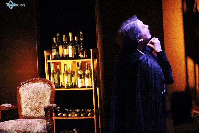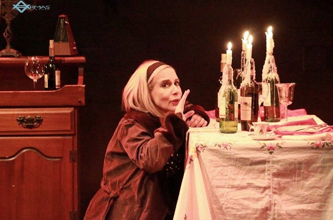 En una sala de comedor y bajo la luz tétrica de unas pocas velas, se ubicará una escena que recordará desde la alucinación aquel sótano donde ocurrieron los crímenes. Una infinidad de botellas de vino hablarán de la necesidad de abordar el recuerdo sin el dolor implícito del suceso. Un metrónomo agudizará la ansiedad del relato desde el diálogo. Un lavamanos permitirá a la madre fungir de Pilatos “yo solo les alquilé el local”. Un par de espejos de pared servirán para no ocultar los verdaderos rostros ante lo evidente. Y un cigarrillo… el desespero que la angustia produce el recordar aquellos crímenes bajo la ambivalencia de la culpa. Una muestra clara del dominio del oficio de Eddy Souza a la hora de mover los hilos de una magnífica puesta en escena junto a la mano inteligente y sigilosa de Carlos Artime en la escenografía.