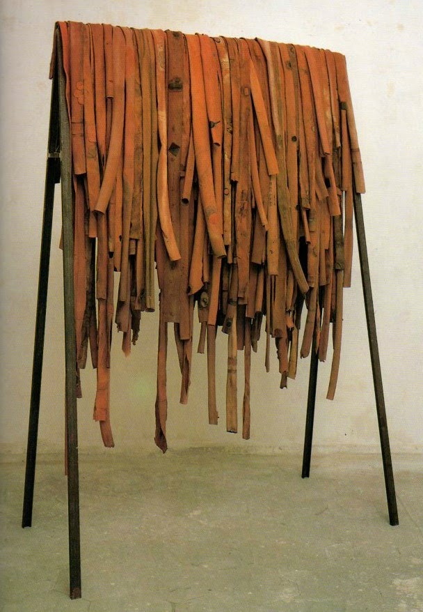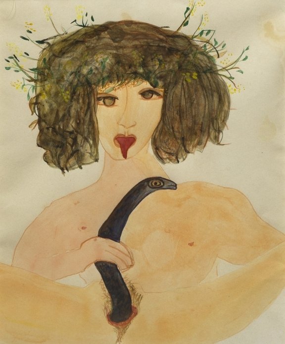A destacar las piezas donde los animales sienten sus instintos más genuinos, las Appasionates y Dorinas. Desconozco si están basados en autorretratos o no, aunque me inclino a creerlo. Un interesante documental donde ella, junto a otros críticos e historiadores del arte italiano hablan sobre su obra, toman varios primeros planos en la entrevista y confirma su pornografía deslenguada y viperina –término nunca mejor dicho- donde salen serpientes y heces de sus partes, en pequeños dibujos a papel y acuarelas. También citar sus piezas ligadas a lo que las curadoras llaman Art Queer Povera para distinguirlo de lo que fue el arte povera en sí, liderado en su época por Boeto, Pascali, Merz o Pistolletto. Unas obras unidas al collage con miles de ojos azules cristalinos incrustados al lado de garras de ave, pelos, sangre o semen o ruedas de caucho de bicicleta sacadas del la fábrica de su padre, donde forman parte de sus materiales.