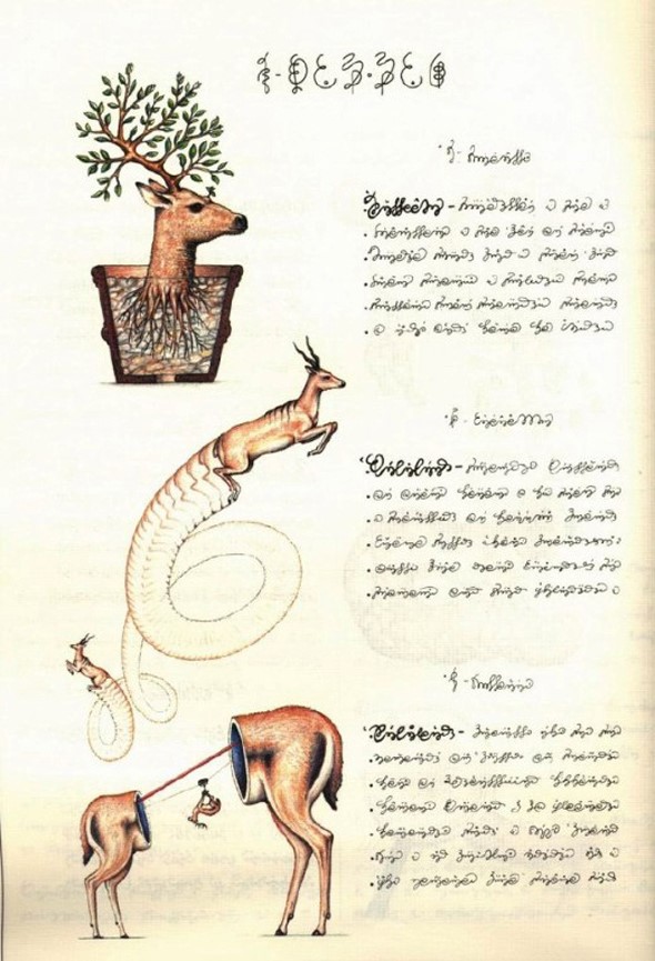 La obra del ilustrador italiano Luigi Serafini –Codex Seraphinianus– contradeciría esta premisa: una enciclopedia ilustrada de todas las cosas, escrita en grafitos que posiblemente ni él pudiese leer, produce en quien los ve el impulso de arrancar a leer. Sin embargo, no damos con el sentido. Algo está escrito sin sentido. Aún ilegible, a la escritura le seguimos otorgando sentido. Algo que no ocurriría con una imagen, donde todo está visto y nada tendría por qué leerse -al menos no en principio.