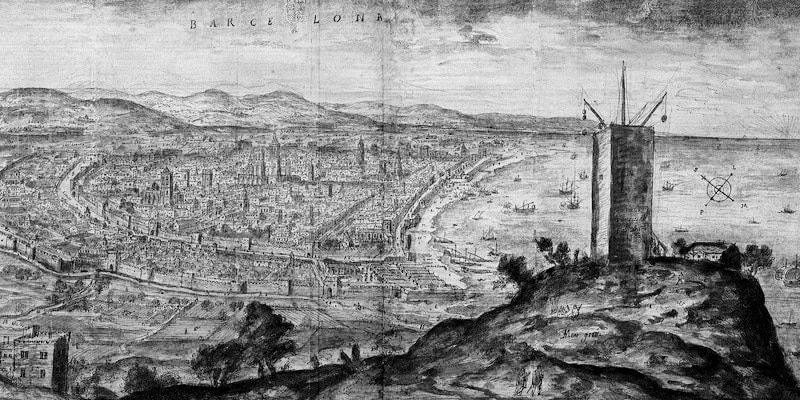 Una montaña, entre las siete colinas que pueblan la ciudad. Origen del territorio ibérico, donde los layetanos se refugiaron en el siglo III antes de Cristo, en busca de protección ante sus enemigos, para divisar el mar y el plano de la actual Barcelona. Monte Júpiter, en la época de los romanos. Etimológicamente, “Monte de los judíos” cuando éstos fueron perseguidos en la Edad Media y debían ser enterrados fuera de las murallas, por no tener raíces cristianas.