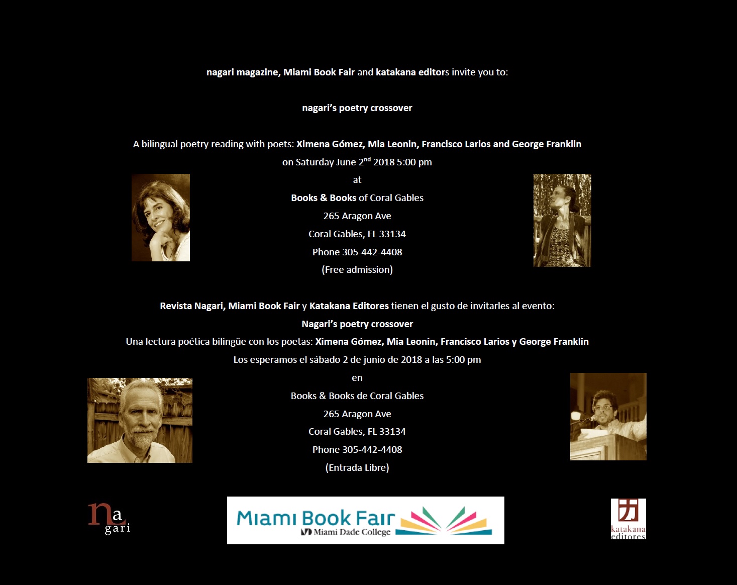 Revista Nagari, Miami Book Fair y Katakana Editores tienen el gusto de invitarles al evento:
