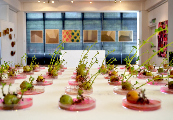 “Citología Vaginal” (2015) es una obra realizada en base a collage, fotografía e impresión digital. que pretende la construcción ficticia de imaginería femenina bajo la estética de una vista microscópica de un papanicolau. En este mismo contexto científico del arte surge: “Solanum Rosea Tuberosum” (2015) una obra de bioarte que como resultado de un experimento -común en la clase de ciencias naturales- un grupo de tubérculos son criados como objetos-sujetos de observación, práctica que se convertirte en un ritual de cuidado y supervisión.