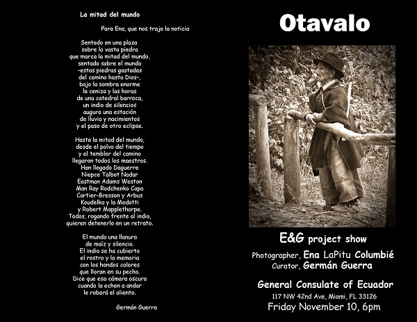“E&G es un proyecto artístico-literario de Ena y Germán. Juntos se unen para que imagen y palabra se difundan allá donde haya una demanda que lo sugiera tal como lo hicieron con “Solitar. Rostro de mujer”. Doscientas imágenes de mujeres desamparadas. Una exposición que ya ha viajado por España, Latinoamérica y próximamente lo hará en África.