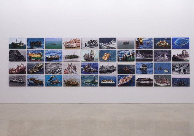 Xaviera Simmons nació en Nueva York y en una de sus obras fotográficas opta por cronificar los náufragos que a la deriva por las aguas del Caribe -tengan presente hoy más que nunca los barcos abarrotados de inmigrantes que deambulan por el Mediterráneo- alzan sus brazos y a veces su imaginación por conseguir tomar suelo en la tierra prometida. Entre esta cincuentena de piezas testimoniales yo elijo una que, bajo el desenfoque deliberado, podemos captar la desesperación en movimiento y la quietud al mismo tiempo. Un retrato hablado sin ningún vocablo alrededor, más que la reunión en un bote de una treintena de personas apretadas en medio del mar.