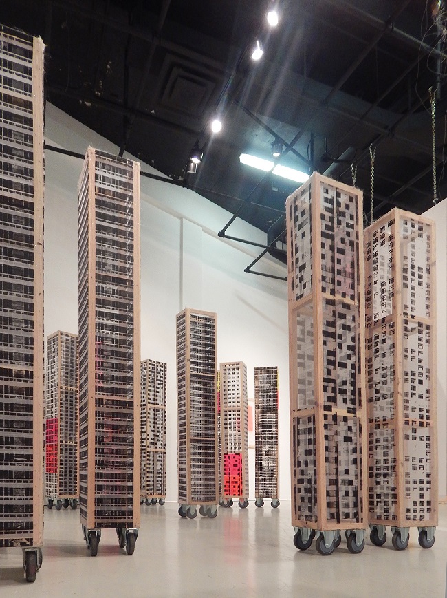 La reciente exhibición en una de las galerías del Miami Dade College Juan Raúl Hoyos: Archietectural Playground, nos remitía a la ciudad posmoderna donde  como dice Kiektik  “la comunicación desplaza ahora los contactos humanos reales a espacios controlados, donde se venden modos de ser, de sensaciones” de sueños y hasta modo de tener “utopías”. Por otra parte, Jorge Eduardo Eielson: al otro lado de los lenguajes, presentada en KaBe Contemporary Art abordaba, a partir de una poética afectiva que sólo por convención denominamos artística y literaria, espacios alternos e interdisciplinarios de creación del sentido que Eielson desplegó en torno a la imagen atemporal del mundo.
