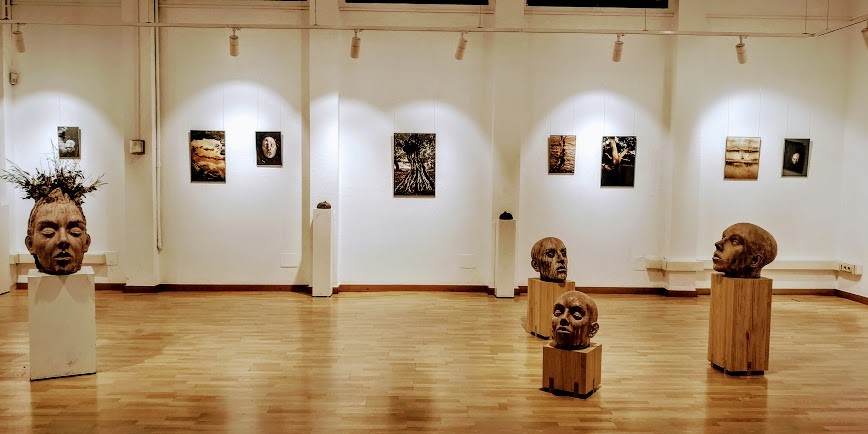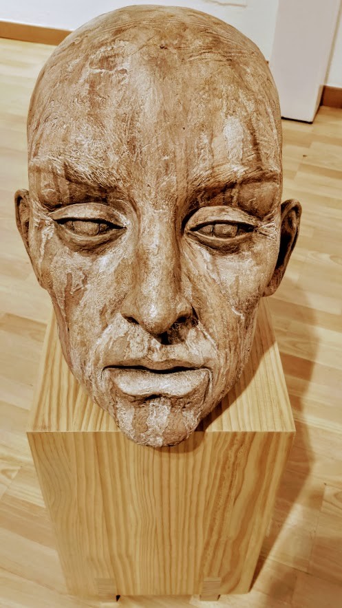 Marta Moreu ubica a sus fisonomías sin apenas más expresión que el sosiego o la mística. Cercanos al suelo con un pequeño pedestal para acercar más al espectador. Una aproximación bastante inusual hasta el punto que es casi imposible no acercarse a la “piel” del material de que están hechos y acariciarlos. Particularmente, su realismo y su técnica apurada me recordaron a las piezas mastodónticas que Antonio López tiene en Santo Domingo de Silos del rostro de dos niños bajo el tinte negro a la entrada del monasterio. Bordeando la sala, distintas máscaras en reposo permiten al visitante el tacto y el aprecio de su ejecución.