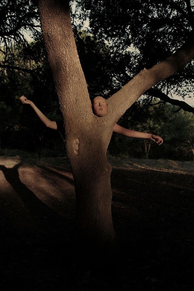 ¿Qué hace entonces la fotógrafa Sara Lomas? Desde la experimentación que le evoca el poner las piezas en distintos lugares donde el paisaje es un sujeto más. Busca a su alrededor los puntos donde mejor combinan las piezas de Marta. Las integra en la parte corpórea de un árbol. Entre el tronco y las ramas. Pone a una modelo sin más ropa que su propia piel a recrearse en el bosque y le sugiere que se coloque frente a su objetivo para captar aquel juego teatral que bien hicieran los griegos bajo el nacimiento de la tragedia. Hay momentos que las hunde con discreción en la orilla de un río y solo les deja emerger los labios junto al agua.