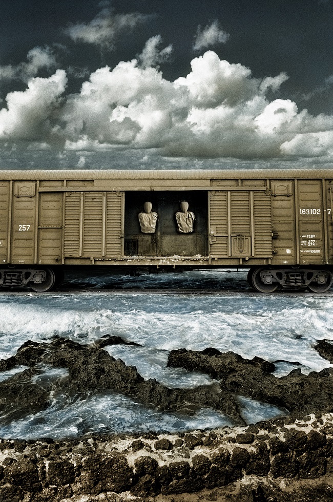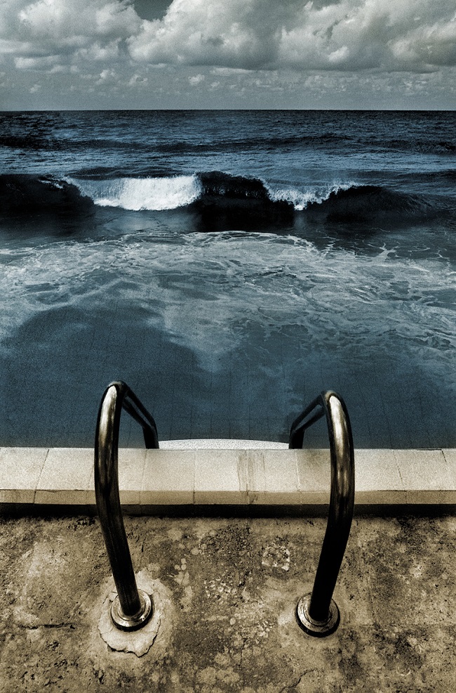 Posiblemente tal como lo concibieron los surrealistas como Magritte (Es solo agua en la lágrima de un extraño (1986) y no bajo este icono que lo identifica. Lo hizo al interpretar la ciudad de Nueva York (2005/06/07) en su exposición en distintas fases. Olvidándose particularmente de los picados o contrapicados de las alturas. Y circulando por las calles en busca de esquinas, objetos o individuos que encontraba a su paso. Más cercano del lienzo hiperrealista de sus orígenes como creador plástico, que como fotógrafo que parte de la documentación. Más al lado del detalle lírico – como la casa que le cubre una carpa azul y emerge una palmera del jardín, que del ensayo sobre la experiencia habitada. O más próximo a un “mar de luz ” que desencadena una escalera de aluminio que te lleva a una supuesta piscina… que fotografiar el océano por sí mismo.