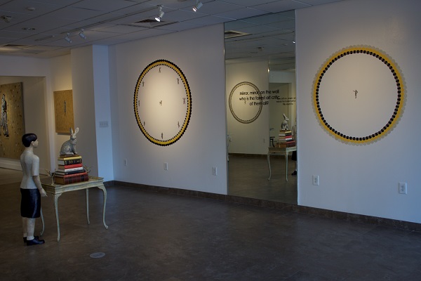 Irónico y con un humor negro que crea estilo. O si quieren, lo pueden traducir, como rigurosamente serio con lo que ocurre a nuestro alrededor desde una aparente sonrisa. Casi cercano a aquel Magritte de iconos en reposo. De figuras humanas con bombín. O sujetos y animales en posición sedente o mágicamente estáticos. Una elegancia visual más próxima a lo lúgubre que a lo explícito construida a base de elementos simples como libros o un puñado de cuerdas en una boca de un sujeto para configurar un parlamento con sus semejantes figurativos u objetuales.