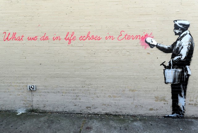 Vimos por TV, grafitis famosos durante el mayo del 68 en el barrio latino de la capital gala: “Pedid lo imposible”. Tuvimos la presencia en vivo de Keith Haring apoyando con sus imágenes la lucha contra el SIDA en el distrito del Raval de Barcelona. Supimos por Basquiat el amor que tenía por relatar en sus pinturas los improperios y piropos de las paredes en las calles del viejo Manhattan. Y por fin, pasado el siglo XXI oír hablar de Banksy y sus intervenciones sociales en distintos muros y ciudades del continente. E incluso en Wynnwood, ver crecer la estética y el color en sus calles a partir de la pintura callejera.