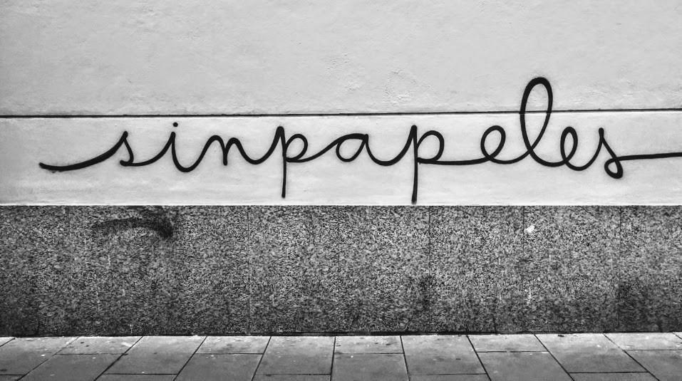 Y para finalizar, desde la semántica, aquí hay un “sinnúmero” (aplíquese lo mismo para esta palabra compuesta pero aceptada en la RAE, a diferencia de sinpapeles) de opciones posibles e interesantes. El diccionario oficial define papel, como un elemento matérico hecho de fibra vegetal y agua. Sus distintas cualidades y propósitos varían: papel cebolla, papel charol, papel cuché…de aluminio, de celofán etc. etc. Acepciones de tipo teatral o cinematográfico: “El papel del actor en esta escena es crucial”. Referencias a qué rol desempeña una persona en un lugar: “El papel que hace en el grupo es irrisorio”. O sustituirlo por un engaño “Haciendo el papel que no le corresponde”. Llegamos al término documento. Y en esta parte, sí cita – …pero por separado – a sin papeles como una persona extranjera que carece de la legalización necesaria para residir o trabajar en un país.