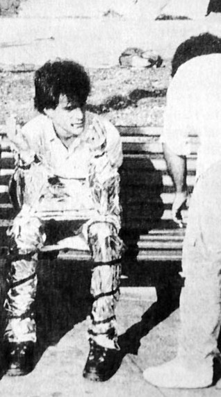 crespoTomando prestado el cesto de los papeles del baño de caballeros, Fernando García armó la instalación más escatológica que se haya exhibido en esa egregia institución. Mezcló papeles sucios con sus diplomas académicos (incluyendo el del ISA) con sellos, bonos y demás parafernalia sindical. Luis Alberto Sosa expuso una pintura engañosamente ingenua que combinaba el texto “para subir al cielo se necesita una escalera grande y una estrellita” con las imágenes de una escalera y una estrella infantiles. Abelardo Mena presentó un dibujo que parodiaba una pieza de José Bedia, pero no recuerdo el tema exactamente. Juan-Sí González y Jorge Crespo presentaron performances, Juan-Sí se afeitó el abdomen en forma de triángulo, como de bandera invertida, y en el pecho la palabra CUBA, en la frente se pintó un número, como un prisionero de campo de concentración. Crespo tapizó tres o cuatro lados de una columna con pinturas sobre cartulina y se hizo amarrar a esta, forrado en papel plateado, como un Prometeo posmoderno.