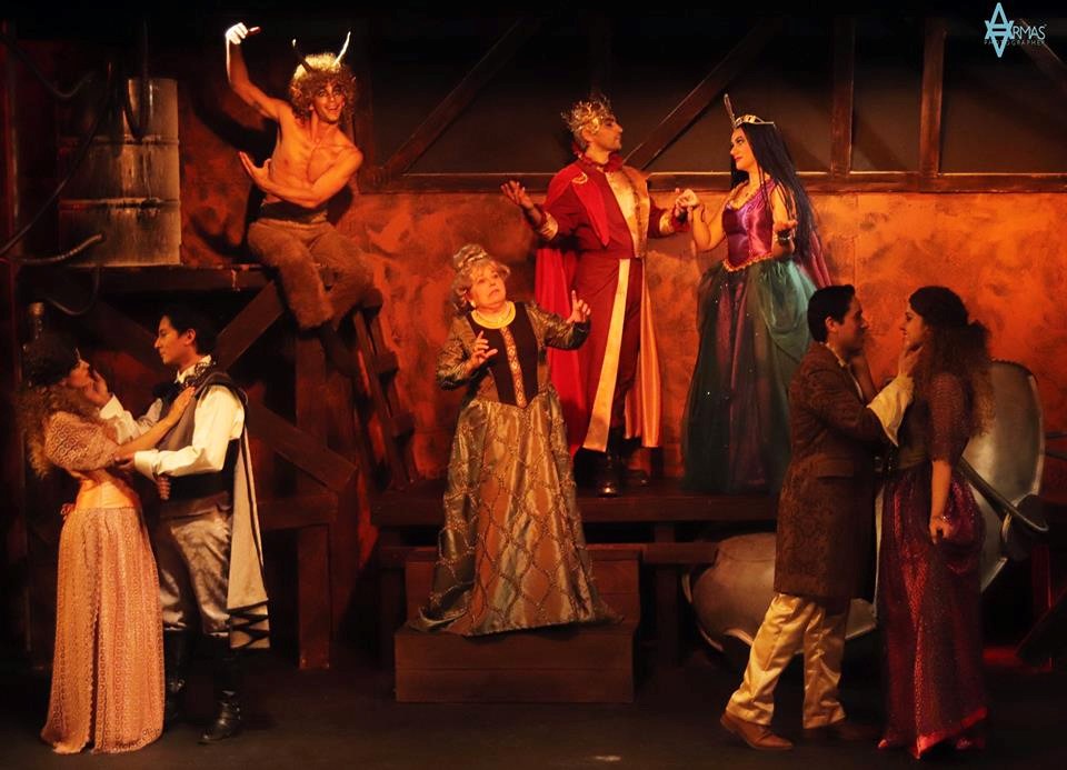 Teseo e Hipólita se van a casar y una serie de acontecimientos bajo la magia del sueño se van a reunir en esta ceremonia. Aparecerán los bretes y sinsabores de dos parejas de nobles unidos y desunidos por el amor: Demetrio, Lissandro y Hermia bajo la mirada de la gruñona Eladia. Unos guiados por un reino de hadas de malvados/buenos contra el poderío de Oberon y Titania. Otros unidos al feudo de los cómicos donde Membrillo dará pie a que Píramo y Tisbe, amañen una obra grotesca. En aquella representación todo se resuelve bajo la felicidad y el buen humor. Y en medio del tormento, el pícaro Robin – impecable y maravillosamente interpretado el papel de duende/fauno de Alejandor Gil – amaña pócimas equivocadas para todo.