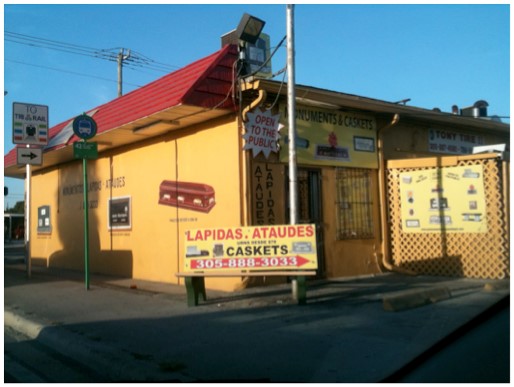 La foto del día se la lleva mi amigo Juan Encías de Guanajuato al captar una instantánea en Hialeah donde se ve un banco de parada de autobús anunciando una módica rebaja en ataúdes justo a la vuelta de la esquina entre Le Jeune y la 44 st. No es una boutade que dicen los franceses, sino una realidad informativa que puede sustituir, simplemente, a las instantáneas de Siria donde el Estado Islámico entierra las cabeza de sus decapitados-no-conversos, como si fueran semillas de manzano en un jardín.