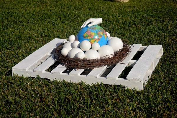 Si bien el nido constituye un punto de partida, en tanto estructura que alude a un lugar de refugio, nacimiento y protección, las interpretaciones de cada artista recorren caminos plurales. Así, mientras Roxana Gottschalk usa el vientre femenino como metáfora del origen de la vida, en Nest of Rebirthing Light, Tomasa de las Casas aborda la idea de la energía renovable y de los nuevos tipos de existencia y funciones que derivan de la trasformación de la material. La propuesta de Silvia Heisel & Scott Taylor trae implícita la posibilidad de su metamorfosis y gradual desaparición como objeto. Inspirados por la forma de un nido de copa, los artistas han construido una estructura temporal a partir de los residuos de plástico biodegradable usado para hacer impresiones en tercera dimensión. Dado el carácter perecedero del material y la exposición a las cambiantes condiciones ambientales del exterior, esta pieza enfatiza en sí misma la idea de la creación como proceso continuo más que como acto acabado. Por su parte, los escultores Aimee Pérez y Armando Pérez Alemán representan de forma poética el efecto de las múltiples fuerzas externas cuya presión termina afectando y coartando la capacidad de acción de los elementos más frágiles de la sociedad. Sin estridencias visuales, esta esbelta pieza de metal constituida por una pipa en cuyo extremo superior un viejo ventilador sostiene cinco huevos de cerámica, aparentemente comprimidos por tornillos de banco o morsa, resulta una de los trabajos más sugestivos dentro del conjunto.