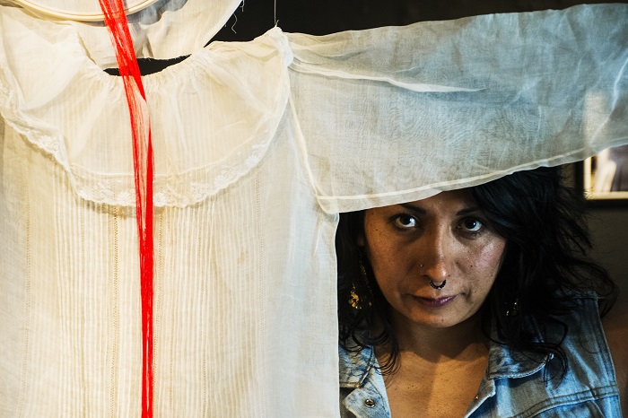 -Hace más de cinco años empecé a crear dos personajes, dos niñas, dos hermanas que se hacían daño, había violencia entre ellas. Empecé escribiendo bitácoras de manera muy inconsciente, anotando, colocando mis referencias, ideas y bocetos. Esas bitácoras se fueron convirtiendo en elementos importantes en mi proceso creativo y, al mismo tiempo, el proyecto fue creciendo. Me fue interesando hacer piezas más que series, trabajar con la tridimensionalidad de la imagen, por ello empecé a hacer los bordados, a intervenir fotos.