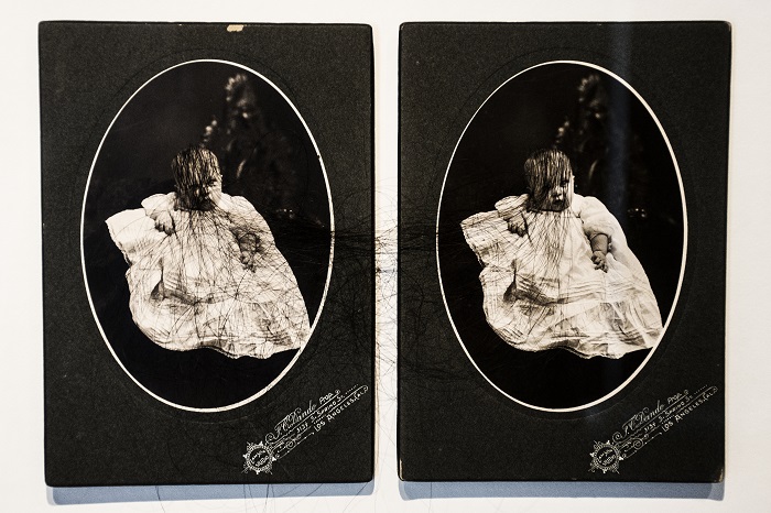 “Entonces, hice mi visión a partir del archivo: coloqué cabellos míos a algunas imágenes. Está la de una niña sin cabello y a ella sólo le pongo uno. Las fotos iguales que encontré las uní y así… Quería que esta cuestión de los niños peludos diera miedo.