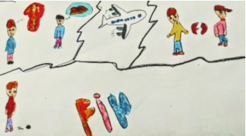Mientras leía el libro, tuve una idea. Imaginé que explicaba el argumento de la obra a mi sobrina María de once años y le pedí que plasmase en un dibujo lo que había entendido.
