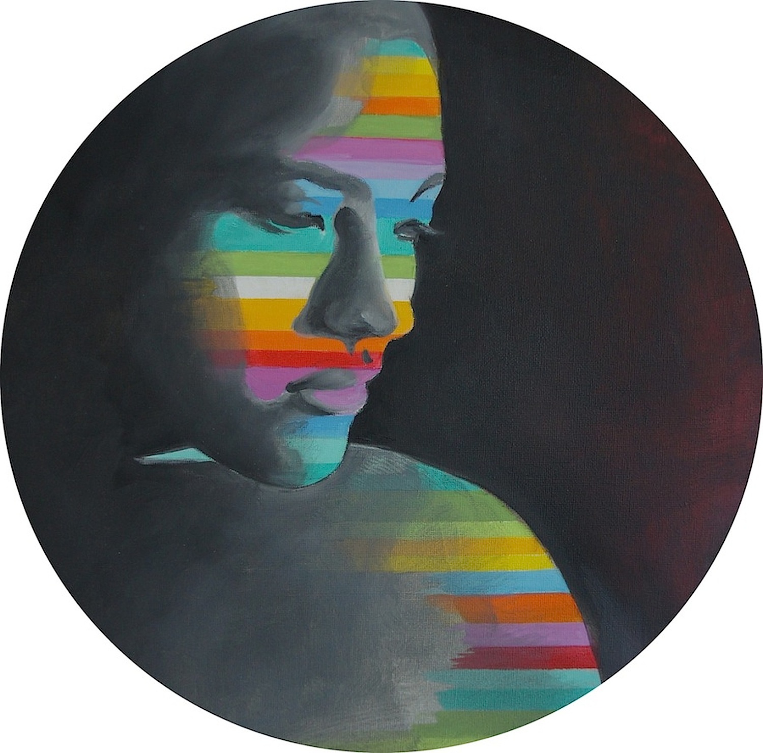 Lueza propels her paintings into the realm of installation by arranging groupings of circular canvases that explode the frame-by-frame logic of the narrative. In her showpiece mural Travesia, everyday domestic scenes conspire to tilt otherwise banal images into uncertain scenarios infused with a sense of the ineffable.