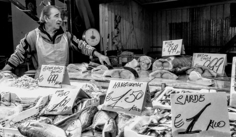 Al mediodía es imprescindible acercarse al Mercado de Ballaro en el barrio de la Albergheria. Contemplar el adoquín irregular de sus calles mojadas y alguna lambretta hacer giros entre el viandante y los puestos de venta donde el tiburón, el pulpo, el sardo o el pez espada están a punto de boca. Al lado, la tienda de especies orientales y las zucchina a 1 euro la porción. Oír el grito palaciego de sus vendedores para que te acerques a probar el peccorino, el granapadano, el caciocavallo, el ricotta y otros exquisitos quesos es un goce desde la platea que te ofrece tu propio andar. Y a continuación, adentrarse en un pequeño templo que no aparece ni en las guías Michelin en la Piazza Ritiro S.Pietro, y encontrarte, antes de entrar en su claustro, no una vitrina con sus santos correspondientes en venta, si no unos libros contra la mafia de Augusto Cavadi y una revista por nombre Antimafia. Todo un compromiso eclesiástico que implica un amén por los capos y comenzar un nuevo itinerario.
