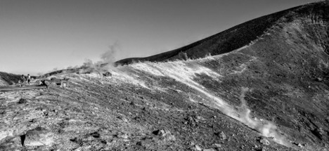 Vulcano es, antes que nada, una tierra en sí misma y silencio. Una tierra oscura poblada con algunas casas blancas y pescadores. Son laderas y colinas dóciles que organizan una boca en la cúspide de una montaña donde un cráter nos va restituyendo azufre y su diminuta lava a sorbos. Tiene el pino originario y una flora exportada que hacen de este espacio un lugar para el retiro. Una isla que no está sola. Hermanada con Strómboli, Salina, Lípari, Filicudi, Silicudi y Panarea hacen de este pequeño archipiélago un lugar insólito para un europeo. Hubiera querido ver a Ingrid Bergman ascender hasta el cráter de Strómboli mientras Rossellini la dirige desde cerca, pero me tuve que conformar con imaginármela desde el Porto de Poniente en Vulcano mientras veía el tráiler de la película en You-Tube.