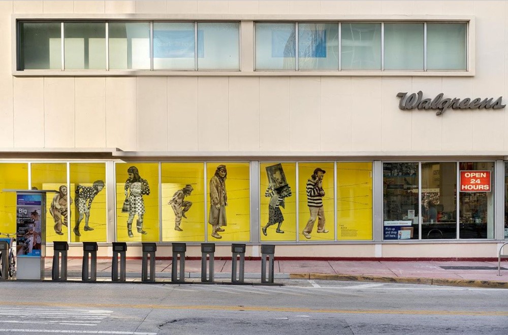 Edison Peñafiel gusta incluir al público en sus obras y prueba de esto, en otra pieza expuesta en los ventanales de la farmacia Wallgreens en Miami Beach y bajo la colaboracion con The Bass Museum of Art, se exhiba “Land Escape 2”. Aquí podemos acompañar a los migrantes en su travesía. Sufrir con ellos. Llorarlos. Y por supuesto, también tomar alguna acción que demuestre nuestra humanidad hacia todos los que han caminado de alguna forma por lograr cualquier sueño, aunque no sea el americano.